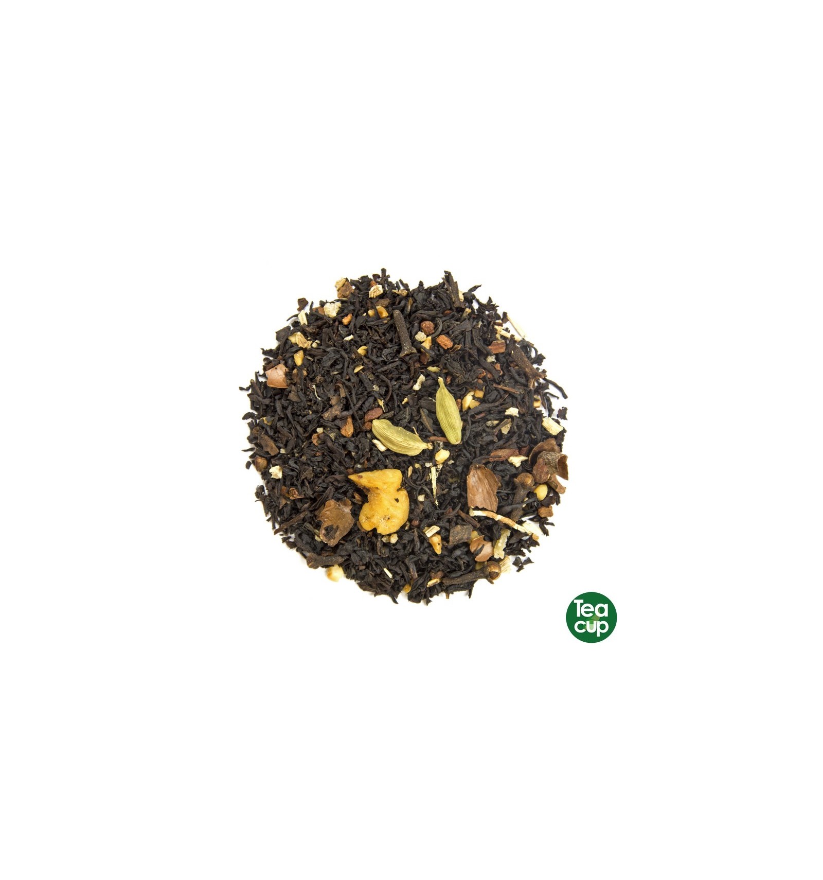 - Té negro Assam; trozos de canela; de manzana; de almendra y de vainilla; clavos; cáscara de naranja y pétalos de rosas.